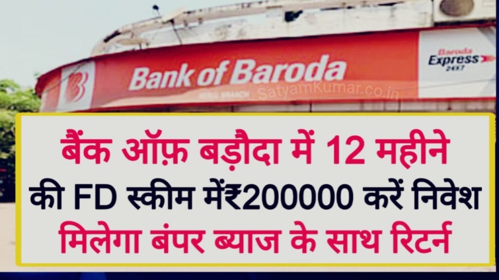 Bank of Baroda FD Sachme: में जमा करें ₹2,00,000 और पाएं ₹45,508 का फिक्स ब्याज, सिर्फ 12 महीने में चेक करें डीटेल्स।